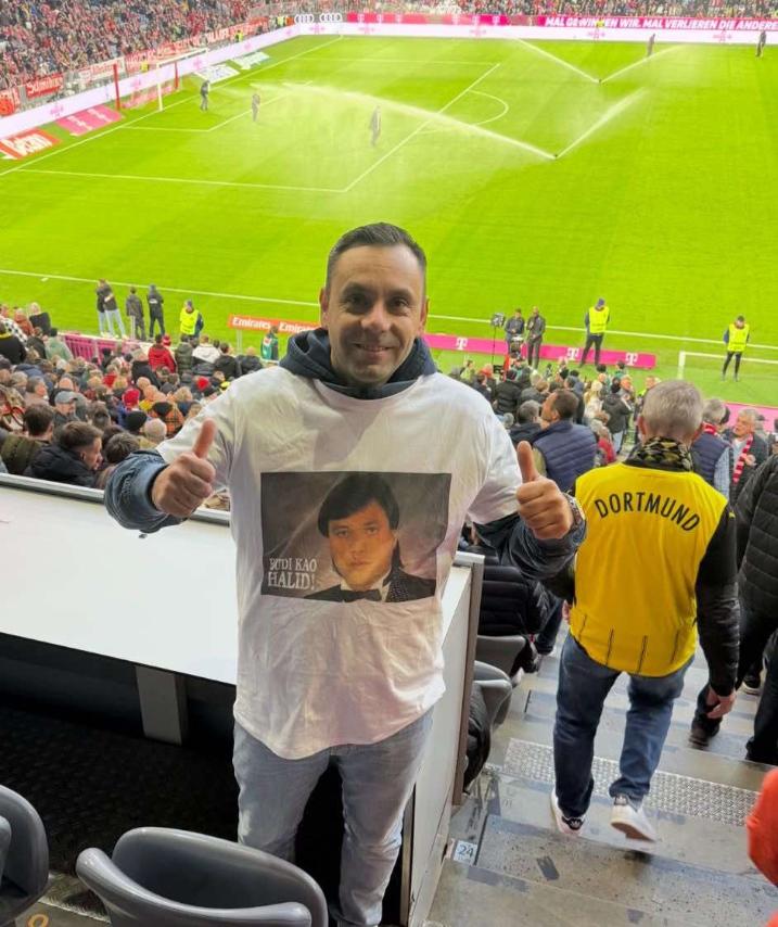 Tokom najvećeg derbija njemačkog fudbalskog prvenstva, između Bayerna i Bosussije Dormund, koji je odigran večeras, jedan Sarajlija koji živi u Njemačkoj odao je počast Halidu Bešliću.